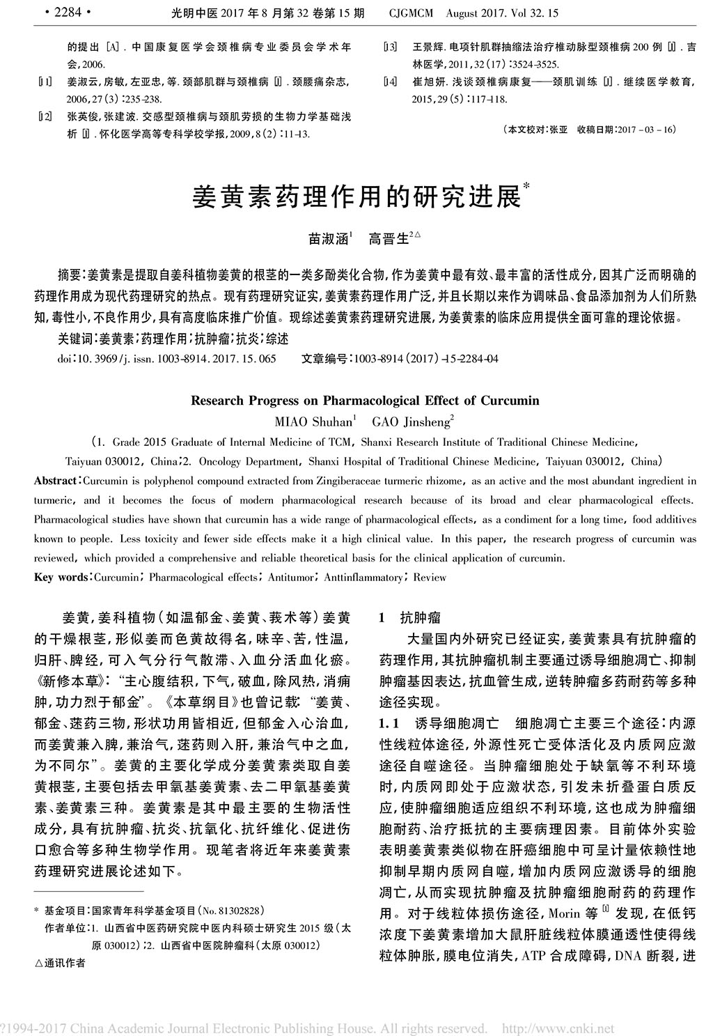 姜黃素藥理作用的研究進(jìn)展_苗淑涵